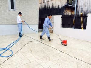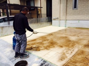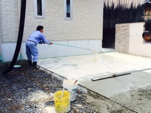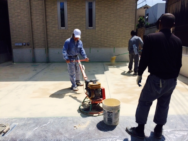 上の写真は、カラーハードーナー(色粉)散布・均し